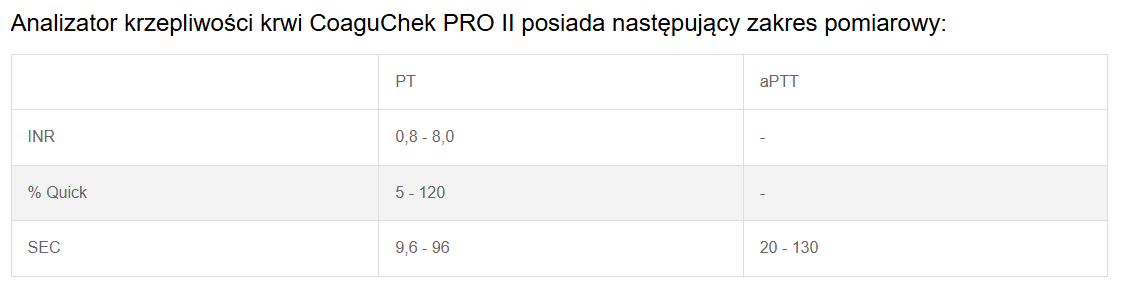 • Analizator krzepliwości krwi CoaguChek Pro II do oznaczania INR przez lekarza lub personel medyczny
