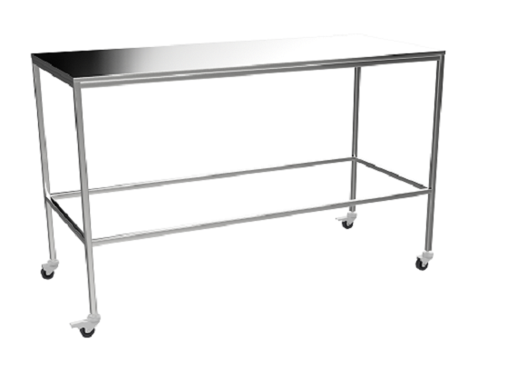 Stolik jest wyprodukowany ze zgrzewanej stalowej blachy o grubości 0,8 mm oraz profili metalowych, co gwarantuje jego długą żywotność i stabilność. Dopuszczalne obciążenie stolika to 50 kg. Dodatkowo posiada on 4 kółka jezdne (2 koła skrętne oraz 2 koła z hamulcami postojowymi (blokującymi)), które ułatwiają ustawienie mebla w dowolnym miejscu oraz zapobiegają jego niekontrolowanemu przemieszczaniu się. Zapewniają one łatwe transportowanie przyborów medycznych oraz aparatury między salami i umożliwiają szybkie sięganie po asortyment podczas wykonywanych zabiegów. Kółka są antystatyczne i wykonane z tworzywa, które nie brudzi posadzek.